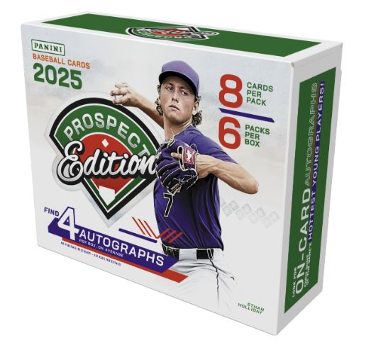 2025 Panini Prospect Edition Baseball marks the return of a set focused on up-and-coming stars under this brand name for a second year in a row. Before 2024, Panini produced its prospect-heavy baseball concept as Elite Extra Edition.